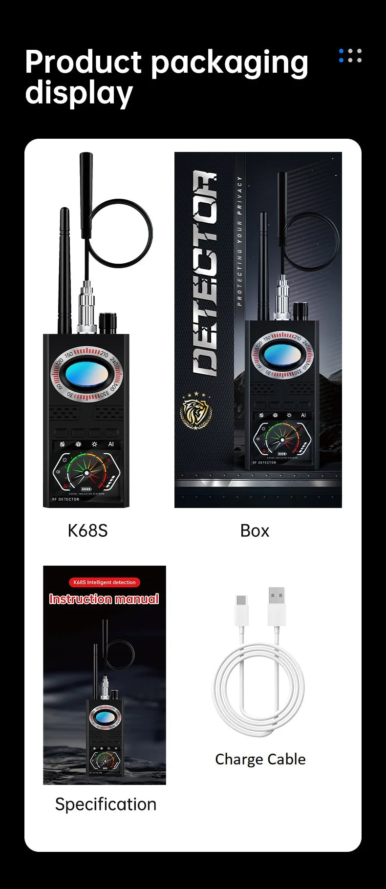 1x USB CableNew K68S New Scan Wireless Spy GPS Tracker RF Bug Signal Finder Detector Mini Camera