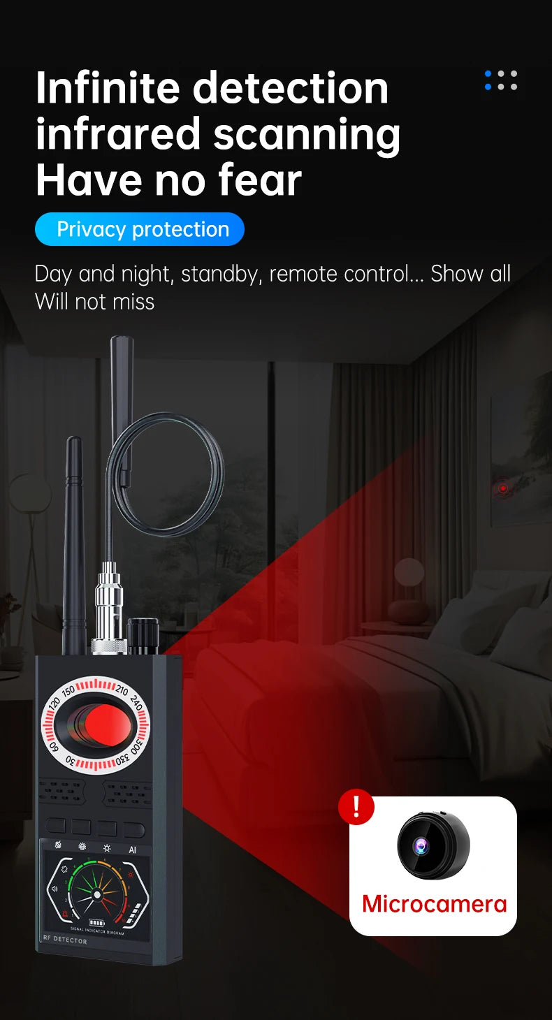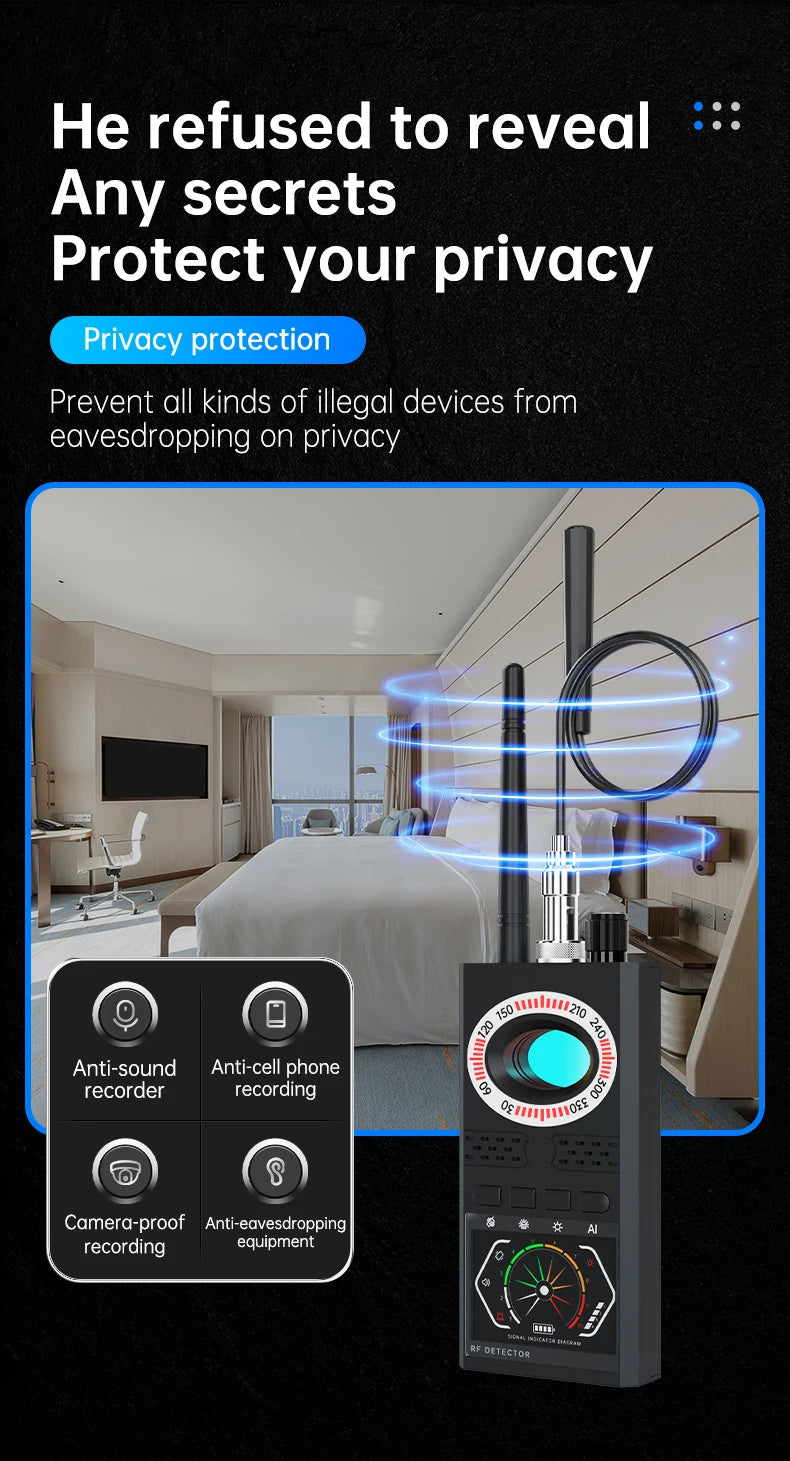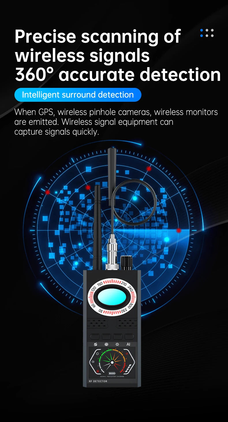 This SMARS K68S wireless signal detector is designed to scan and detect all types of wireless signals, including GSM, GPS, Bluetooth, Wi-Fi, and more.