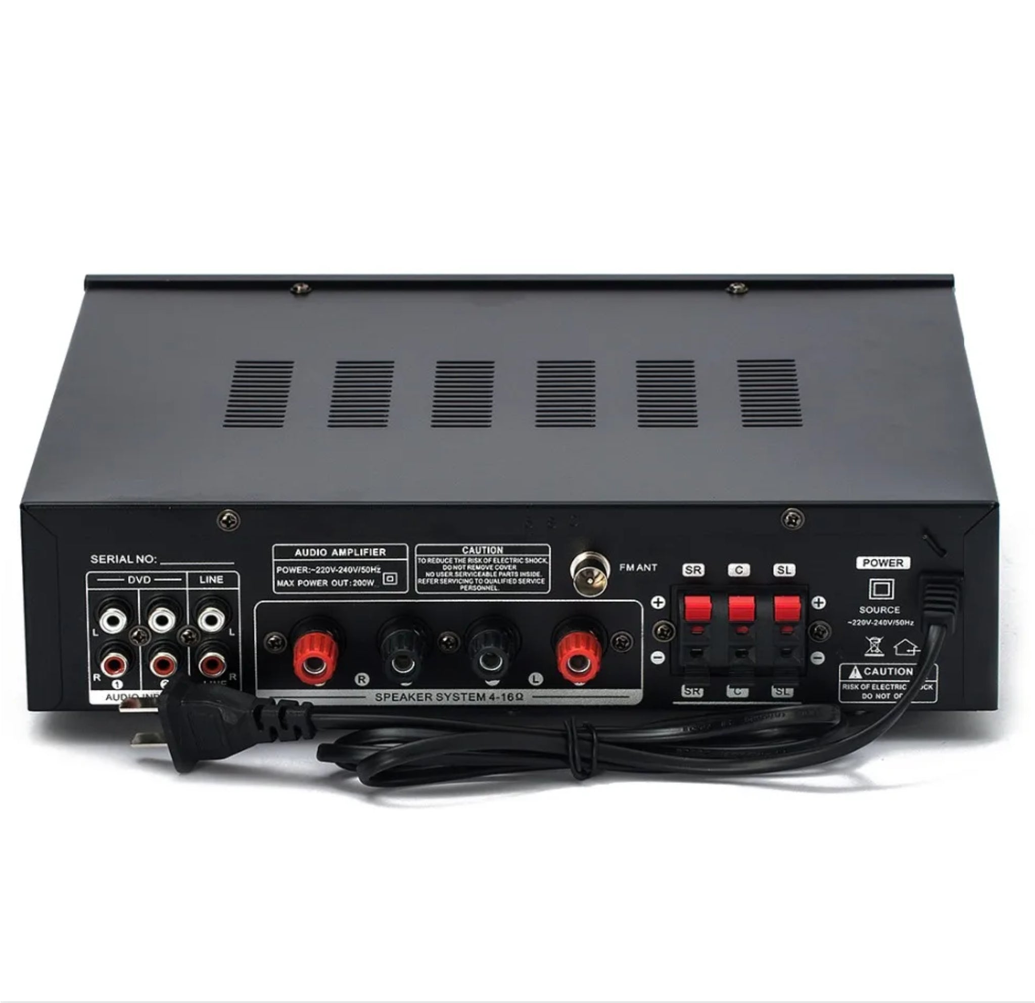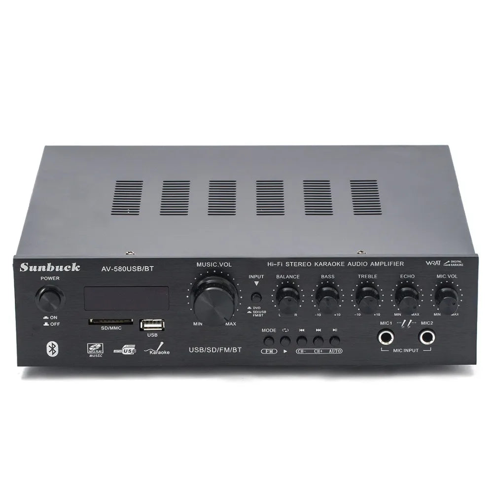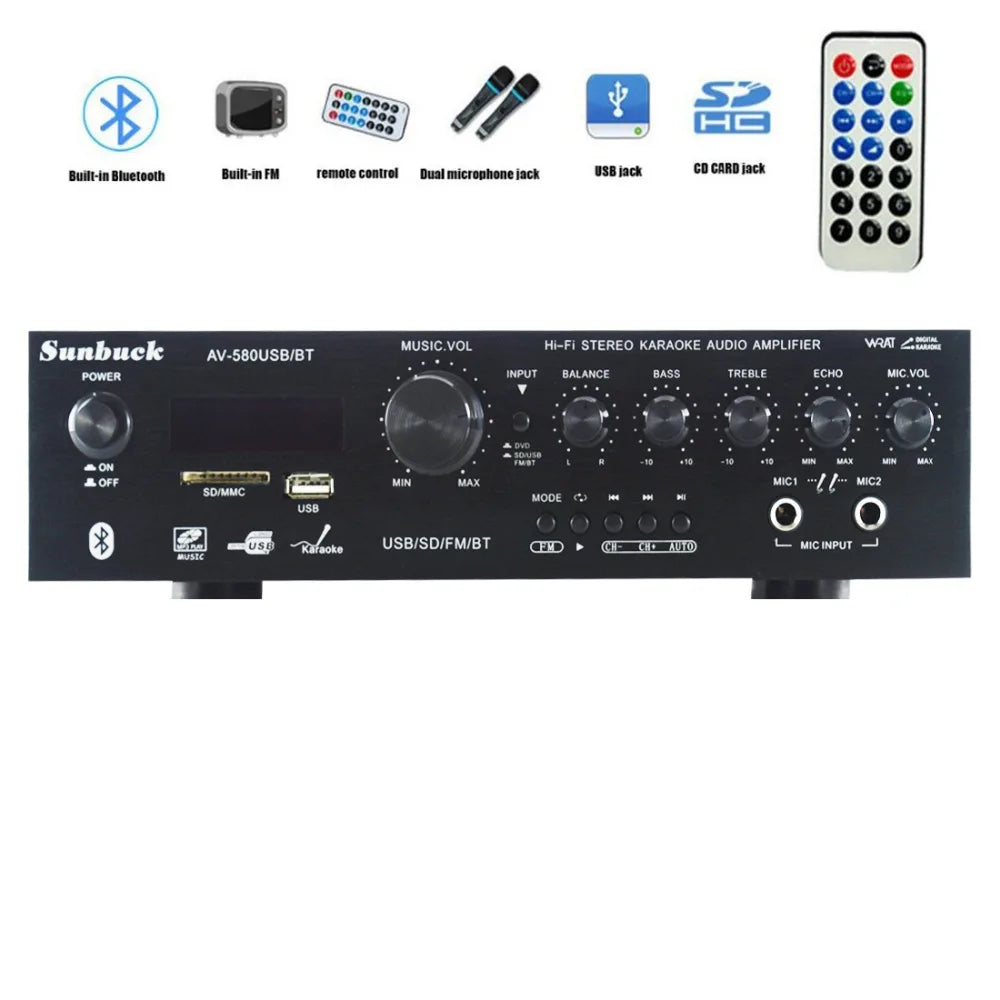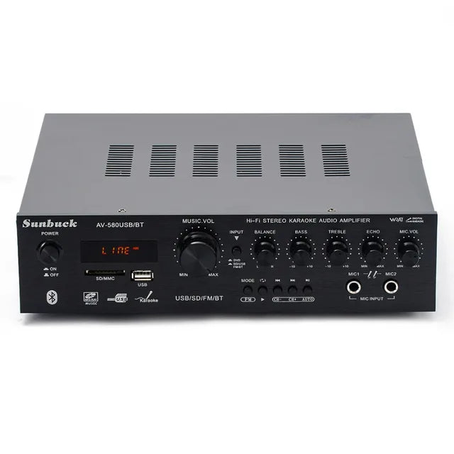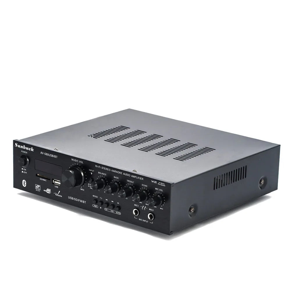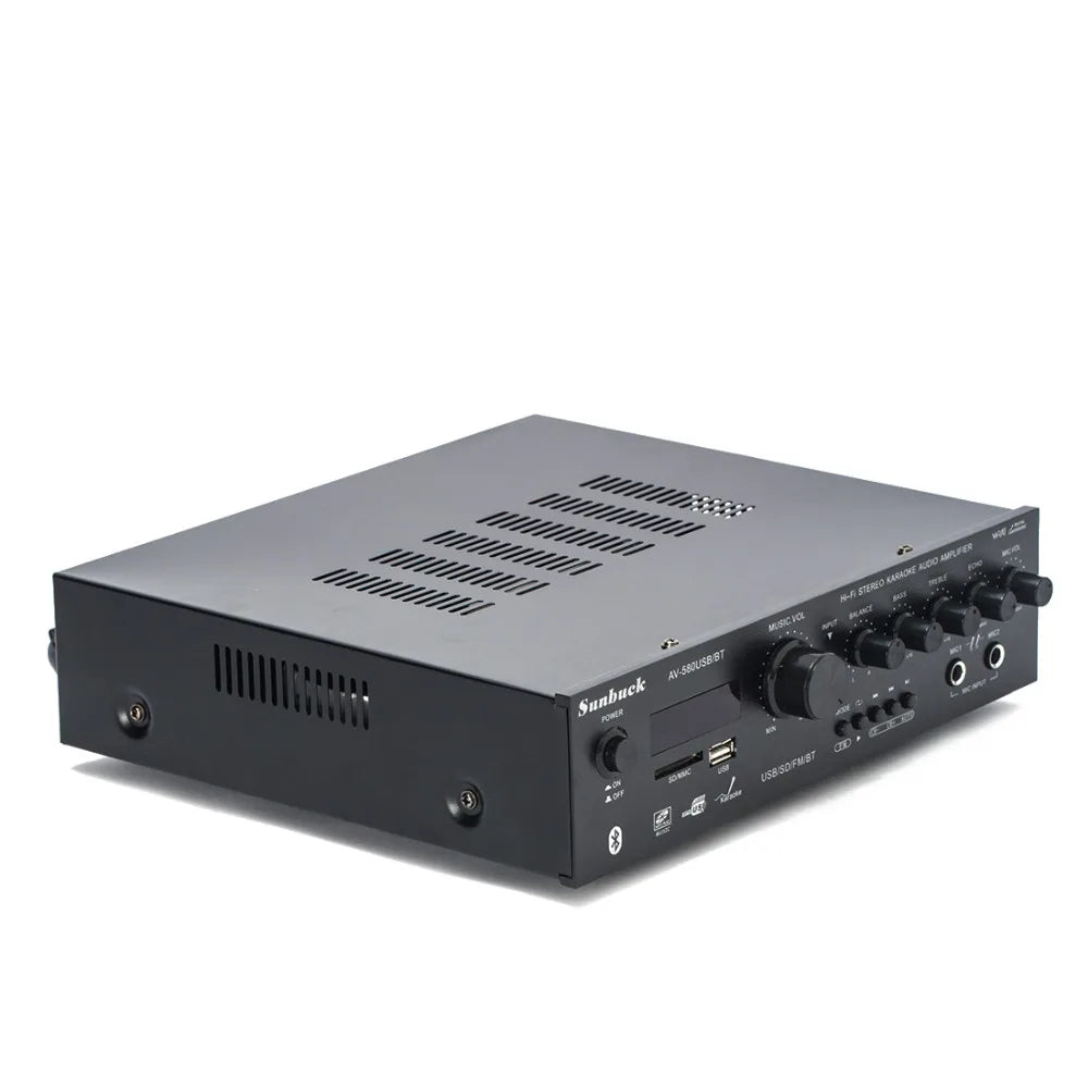 The Sunbuck TAV-580BT is a state-of-the-art 5.1 channel home theater amplifier that delivers an immersive audio experience. With a peak power output of 1000W+1000W and a rated power of 300W+300W, this amplifier is designed to bring your movies, music, and games to life. The Sunbuck TAV-580BT is not just a sound amplifier; it's a gateway to a world of high-fidelity audio. Whether you're hosting a movie night or gaming session, this amplifier ensures that every sound is crisp and clear.